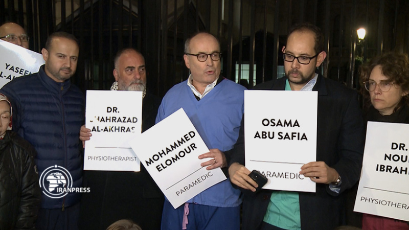 Во время ночного собрания перед зданием премьер-министра Великобритании несколько врачей и медсестер в разговоре с репортером «Иран-пресс» подчеркнули: «Медицинские центры в секторе Газа не должны стать объектом нападения, а больницы должны быть защищены международными законами».