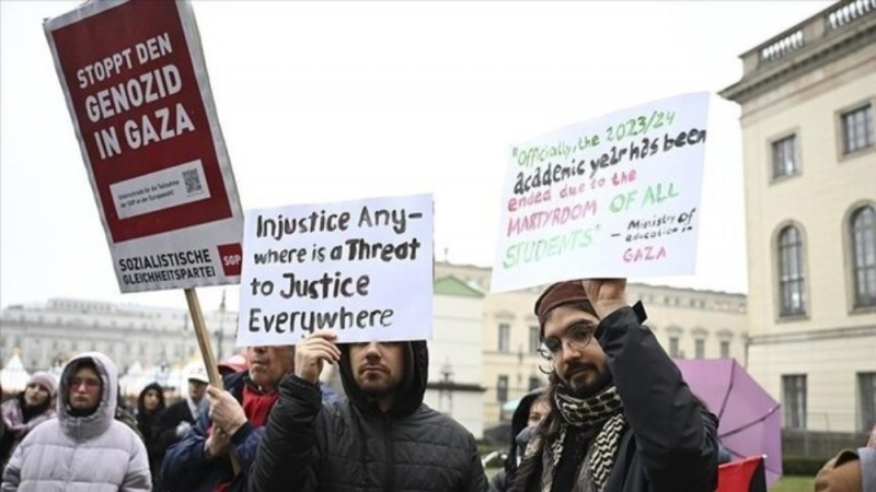 По сообщению информационного агентства «Анадолу», студенты собрались перед Университетом Гумбольдта в Берлине, чтобы провести демонстрацию против нападений сионистского режима на сектор Газа и оказания давления на антивоенных активистов в Германии.