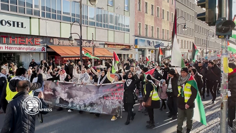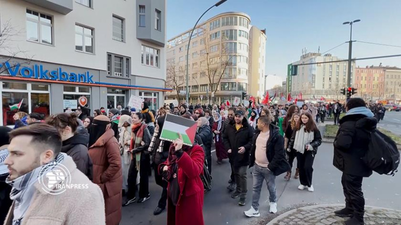 В воскресенье немцы из числа сторонников Палестины вновь вышли на улицы Берлина и скандаировали лозунги против преступлений сионистского режима в секторе Газа, а также поддержки Германией этого режима.