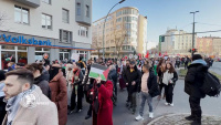 На этой антисионистской демонстрации рядовые немцы и сторонники Палестины потребовали прекращения геноцида палестинцев в секторе Газа и установления постоянного прекращения огня в этой зоне боевых действий.