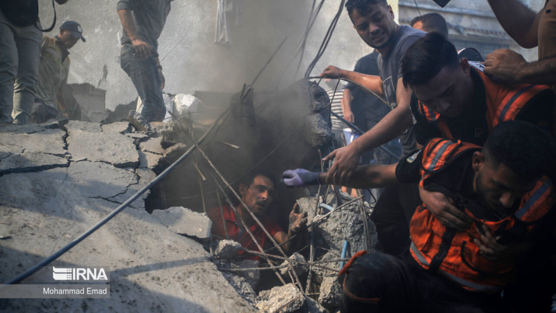 С 7 октября 2023 года сионистский режим, применяя самые передовые виды оружия, в том числе истребители, беспилотники, танки и различные современные виды ракет и бомб, большинство которых были сделаны европейскими странами и США, нападает на сектор Газа.