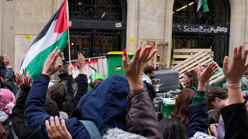 Пропалестинские студенты во Франции, закрывая занятия в разное время, митингуя перед знаменитым факультетом политологии в Париже в поддержку Палестины и заявляя о своей поддержке восстания студентов в американских университетах и европейских странах, требуя прекращения сотрудничества французских академических кругов со всеми академическими центрами и учреждениями Израиля в знак поддержки угнетенного палестинского народа в секторе Газа.