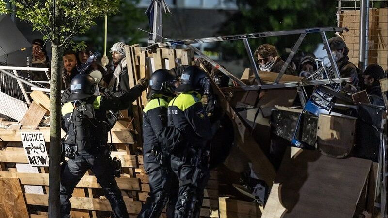 Голландская полиция столкнулась с пропалестинскими студентами Амстердамского университета и напала на них.