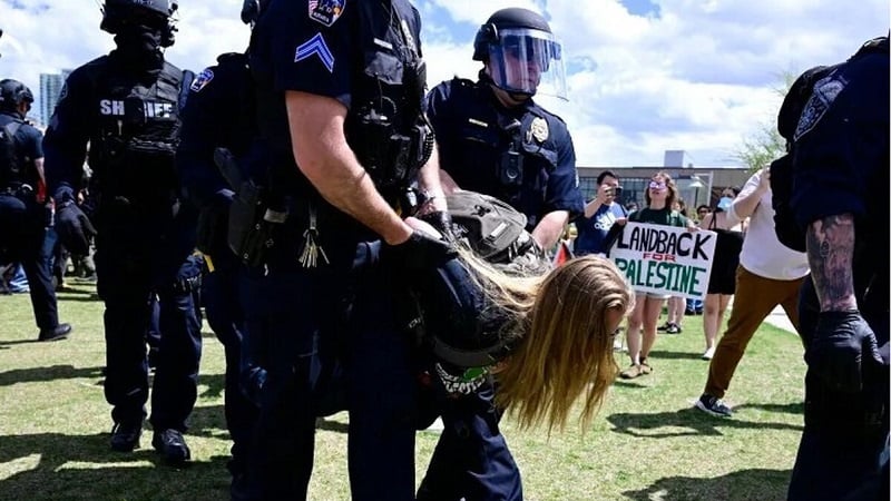 Репрессии и создание удушающей атмосферы для пропалестинских студентов американской полицией повторяются, в то время как студенты продолжают настаивать на поиске справедливости и прав для угнетенного палестинского народа, выступают против преступлений Израиля и проводят свои митинги протеста в других районах.