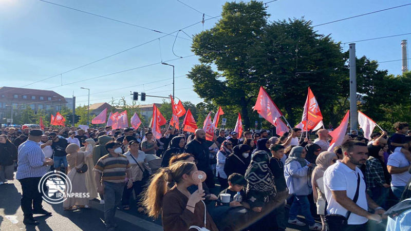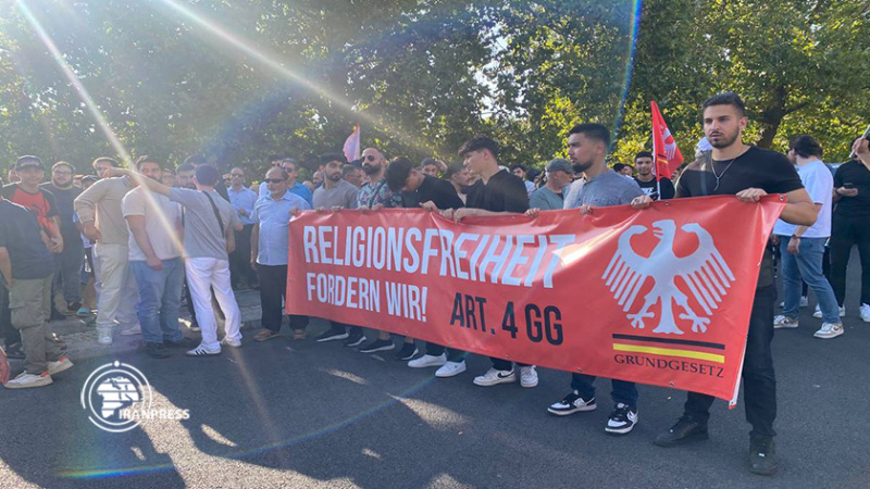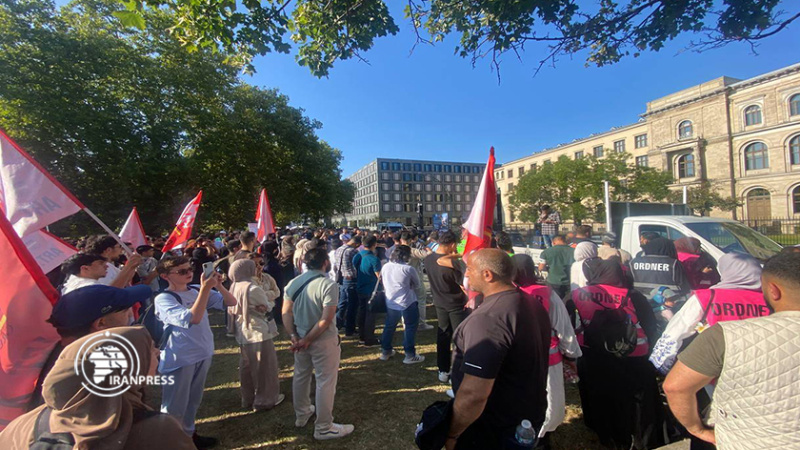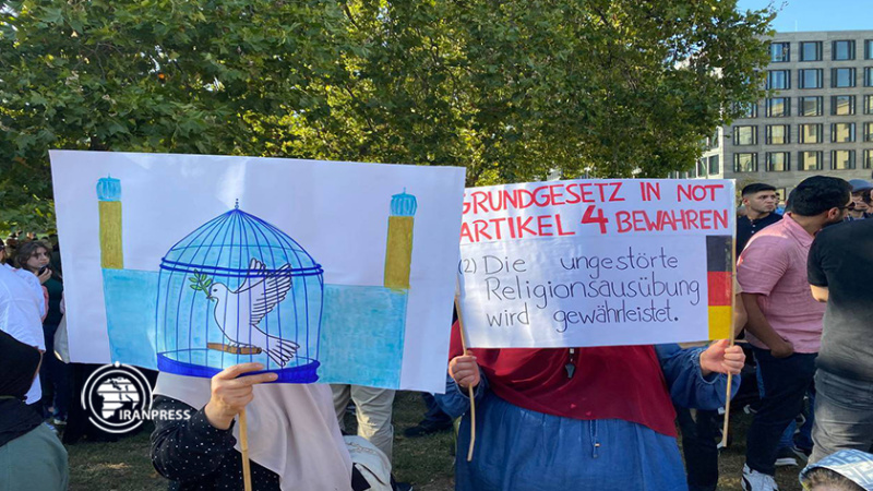 Сотни людей вышли на демонстрацию в Берлине, столице Германии, в знак протеста против закрытия Исламского центра Имама Али (мир ему) в Гамбурге.