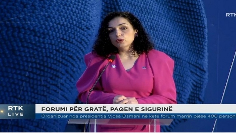 (E plotësuar) Presidentja e Kosovës, Vjosa Osmani, pasi bëri hapjen e punimeve të Forumit për Gratë, Paqen dhe Sigurinë, përshëndeti të pranishmit. Ajo tha se ky Forum sot është kulmi i një pune ndër dekada, për çka kanë punuar gratë e Kosovës, para 22 vitesh gratë nisen iniciativën për Rezolutën 13/25.