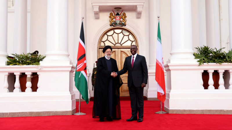 Sipas IRNA-së, në ceremoninë zyrtare të mirëseardhjes, pas bërjes së një fotografie përkujtimore të Sejed Ebrahim Raisi, President i Republikës Islamike të Iranit dhe Ëilliam Samui Ruto, President i Republikës së Kenias, u prezantuan anëtarët e delegacioneve të rangut të lartë të të dy vendeve. Gjithashtu, në të njëjtën kohë me hyrjen e presidentit në pallatin presidencial të Kenias, u gjuajtën 21 gjyle për nder të mbërritjes së presidentit të Republikës Islamike të Iranit dhe delegacionit iranian. Menjëherë pas ceremonisë së mirëseardhjes së Presidentit të Republikës Islamike të Iranit nga Presidenti i Republikës së Kenias, do të zhvillohet një bisedë private mes presidentëve të dy vendeve, e më pas do të zhvillohen negociata dypalëshe të delegacioneve të rangut të lartë. Pas këtij takimi, në prani të presidentëve të dy vendeve do të nënshkruhen dokumente të rëndësishme të bashkëpunimit dypalësh mes Iranit dhe Kenias. Vlen të përmendet se presidenti Sejed Ebrahim Raisi, presidenti i Republikës Islamike të Iranit, të mërkurën në mëngjes u nis nga Teherani për në Kenia në krye të një delegacioni të rangut të lartë me ftesë zyrtare të presidentëve të tre vendeve, Kenias, Ugandës dhe Zimbabve.  Vizita e Presidentit të Republikës Islamike të Iranit në Afrikë është realizuar me qëllim promovimin e diplomacisë ekonomike, forcimit të marrëdhënieve politike me vendet mike, si dhe diversifikimit e destinacioneve të eksportit të Republikës Islamike të Iranit.