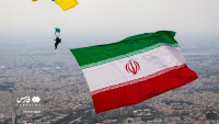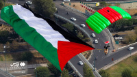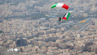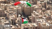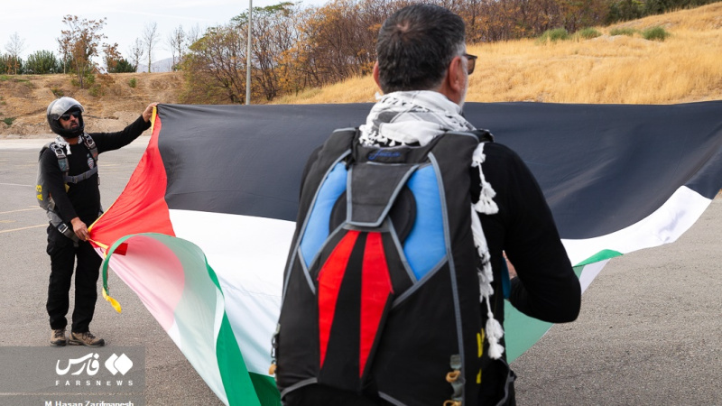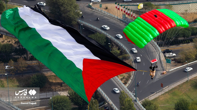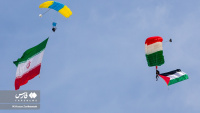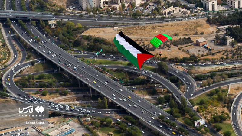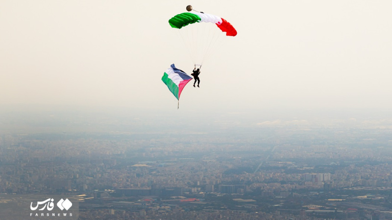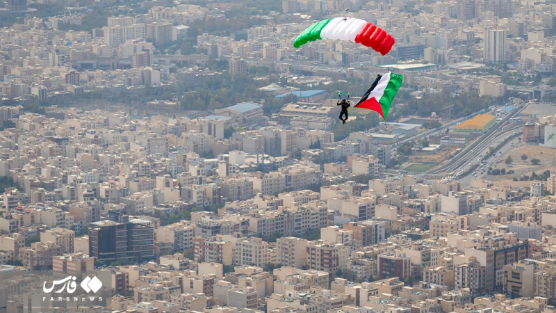 Një grup instruktorësh fluturimi dhe parashutistësh iranianë ngritën flamurin e Iranit dhe Palestinës mbi qiellin e kryeqytetit për të mbështetur popullin e shtypur të Gazës.