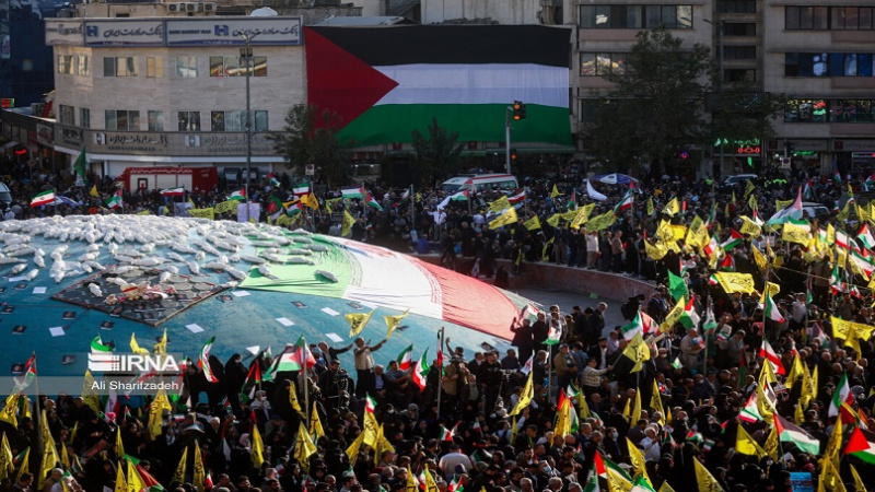 Populli i Iranit Islamik në të gjithë vendin, në kuadër të dënimit të "vrasjes së foshnjave", "kryerjes së krimeve", "gjenocidit", "masakrës", "terrorit", "krimit të luftës" dhe "katastrofës njerëzore" në Rripin e Gazës, mbajtën një marshim madhështor në mbështetje të fëmijëve të shtypur të Palestinës.