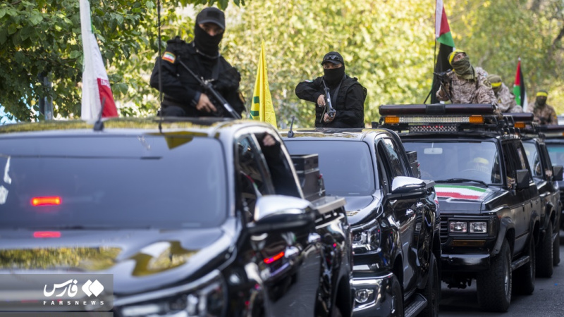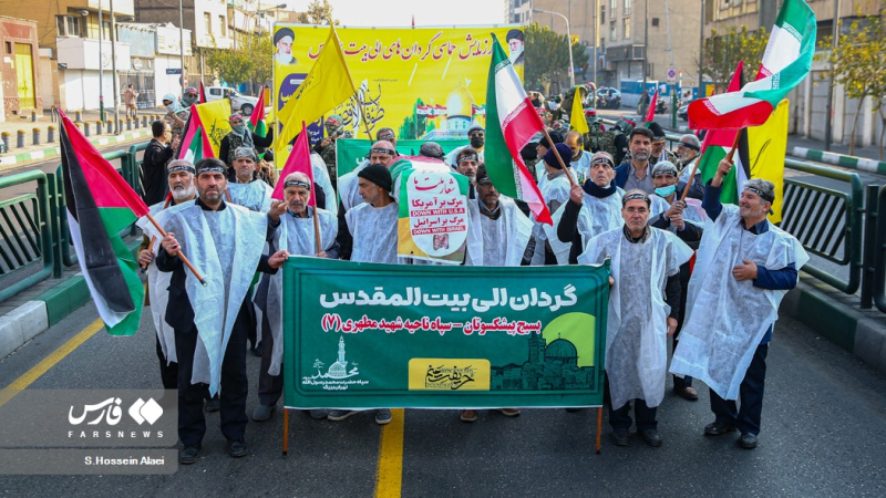 Në rrugën "Enghelab" të Teheranit u mbajt stërvitja dhe marshi me pjesëmarrjen e 50 mijë personave të forcave vullnetare "Basixh" me moton "Drejt Kudsit të shenjtë" në mbështetje të popullatës së shtypur të Rripit të Gazës.