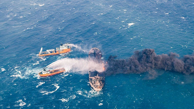 Operacionet për shuarjen e zjarrit në anijen iraniane të naftës