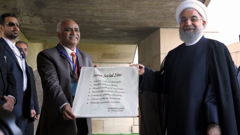 Presidenti i Iranit, i cili e filloi vizitën e tij në Indi me ftesë të kryeministrit indian, Narendra Modi, ai fillimisht u ndal në qytetin jugor Hyderabad të enjten, kurse të premten arriti në kryeqytetin e Indisë, Nju Delhi. Ai po drejton një delegacion politik dhe ekonomik, përfshirë ministrin e jashtëm të RII z. Mohamed Xhevad Zarif dhe një numër përfaqësuesish nga sektori privat iranian. Kryeministri Modi dhe presidenti indian Ram Nath Kovind zyrtarisht u takuan me Presidentin iranian Hasan Ruhani të shtunën gjatë një ceremonie ku u shfaqën armë festive zjarri në Rashtrapati Bhavan, pallati presidencial i Indisë në kryeqytetin e këtij vendi. Ruhani dhe Modi dhe delegacionet të dy vendeve do të mbajnë bisedime në "Hyderabad House" në Nju Delhi më vonë gjatë ditës. Ndërsa ishte në qytetin Hyderabad, presidenti iranian u takua me një grup elitash, klerikësh fetarë dhe liderë të bashkësisë muslimane atje. Më pas, ai u bashkua me lutjet e së premtes në xhaminë "Meka" të Hyderabadit. Tregtia jo-naftore mes Iranit dhe Indisë arriti në 4.74 miliardë dollarë në 12 muajt e fundit, duke u rritur me 4.17% krahasuar me të njëjtën periudhë të një viti më parë. Irani është furnizuesi i tretë i naftës i Indisë. India importoi 12.5 milion ton naftë të papërpunuar nga Republika Islamike në periudhën prej prillit 2017 deri në tetor 2018. India, Irani dhe Afganistani kanë nënshkruar një marrëveshje për të dhënë mallra indianë që shkojnë drejt Azisë Qendrore dhe Afganistanit si trajtim preferencial dhe ulje të tarifave në qytetin portual Chabahar në Iranin jugor. Qeveria indiane ka alokuar 500 milionë dollarë për zhvillimin e portit Chabahar, me qëllim që të bashkohet me një korridor transporti gjithnjë e më të rëndësishëm në vendet rajonale të pasura me burime. Modi vizitoi Iranin në maj të vitit 2016, që ishte vizita e parë në 15 vitet e fundit e një lideri që drejton një post të tillë. Marrëdhëniet ndërmjet Iranit dhe Indisë dhe në thelb me nënkontinentin indian janë shumë të veçanta, ka thënë presidenti iranian z. Hasan Ruhani gjatë një takimi me shtetasit dhe me studentët iranianë që banojnë në Hyderabad.