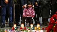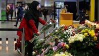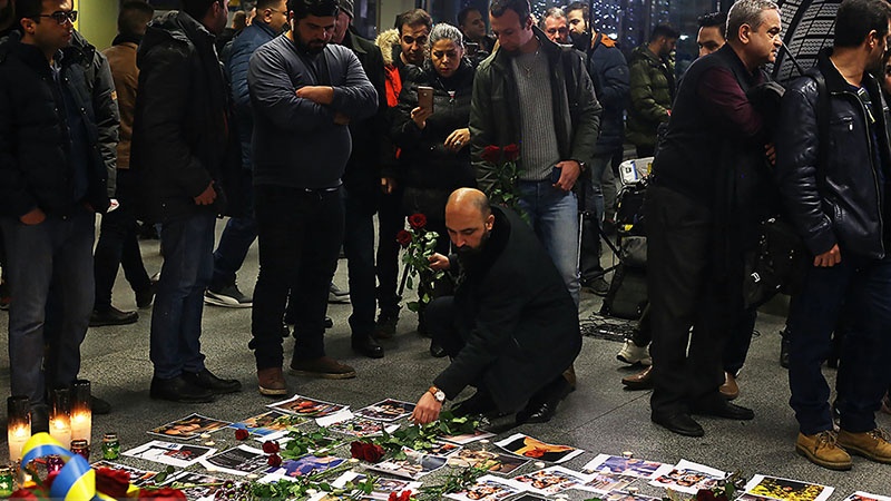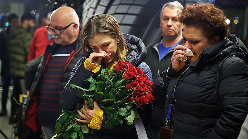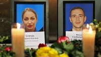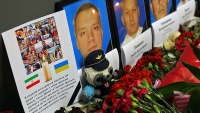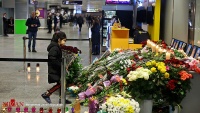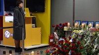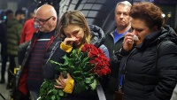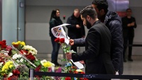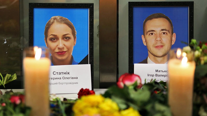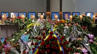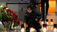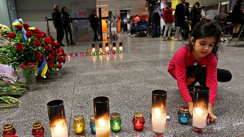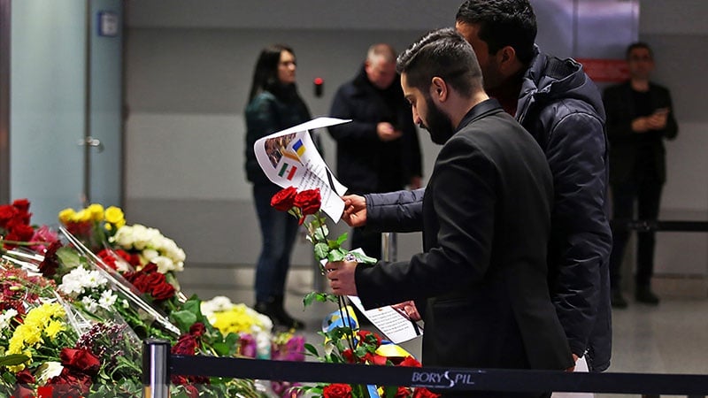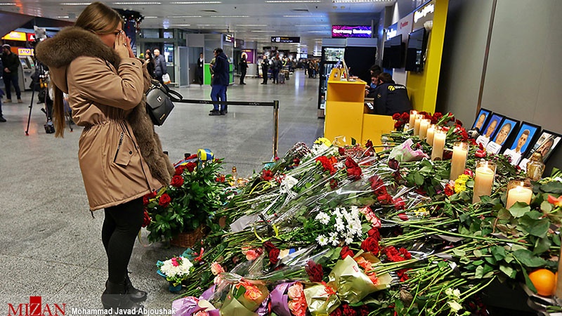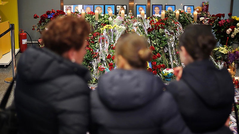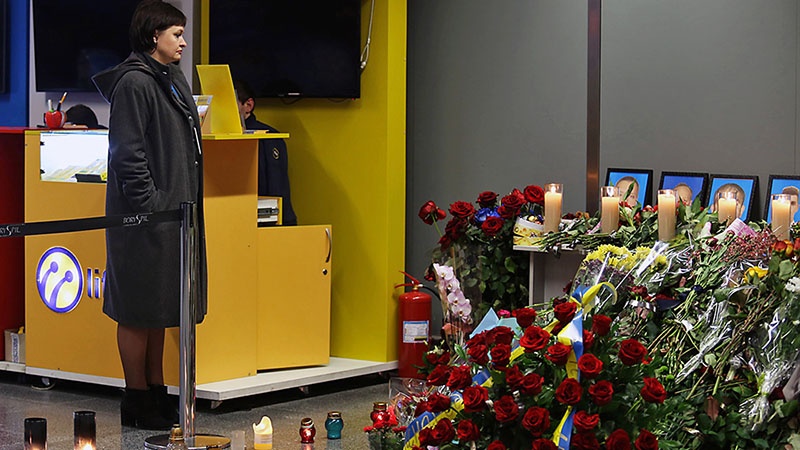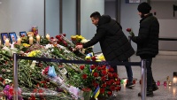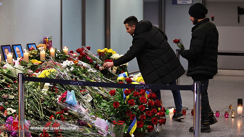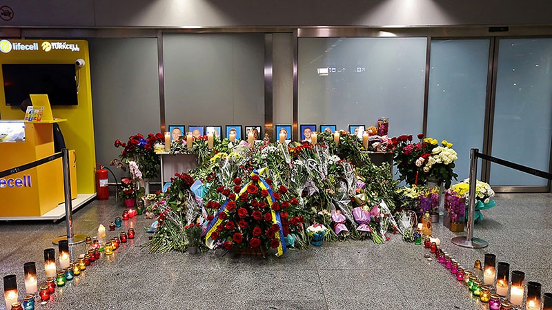 Nderohen viktimat e avionit ukrainas në aeroportin e Ukrainës dhe gjatë kësaj ceremonie qytetarët vendosnin lule në një vend të caktuar si memorial.