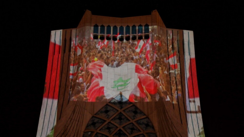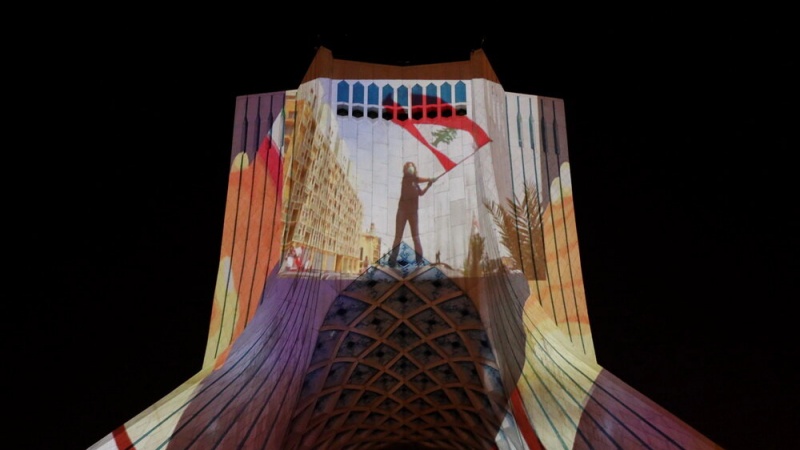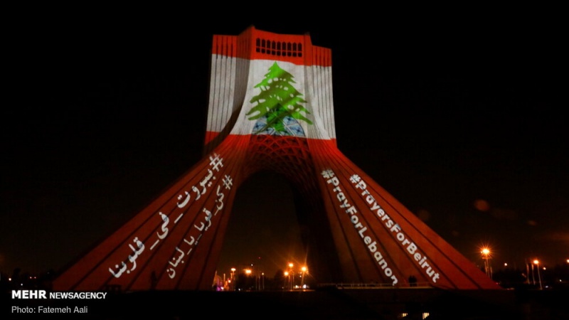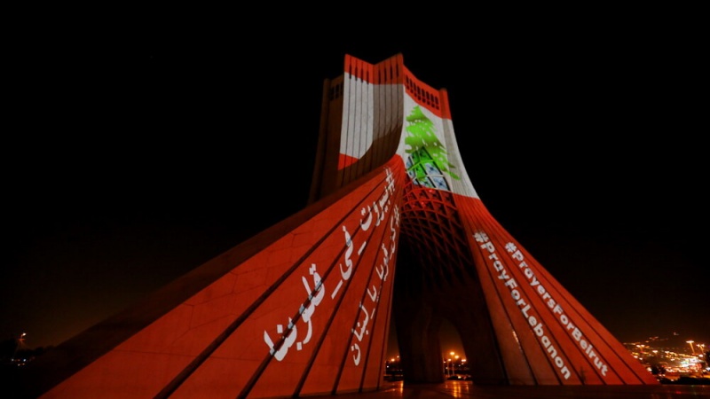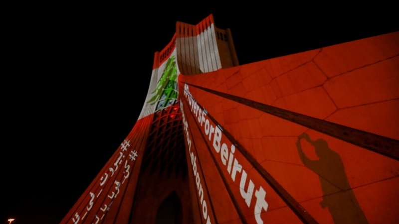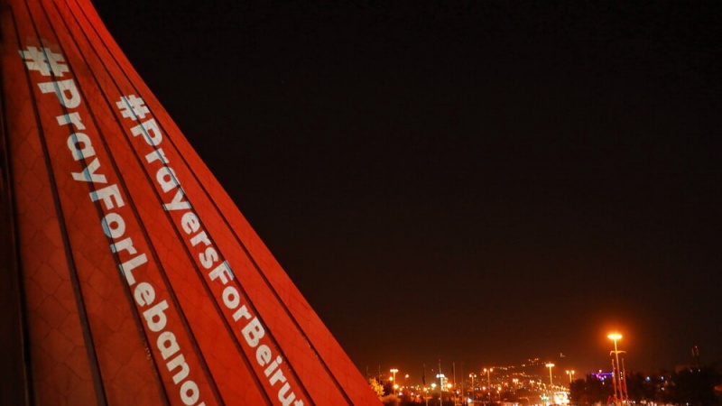 Ekspozimi i flamurit të Libanit mbi kullën "Azadi" në Teheran në shenjë solidarizimi me popullin libanez për shkak të tragjedisë në portin e Bejrutit.