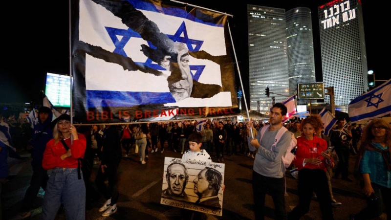 Sipas IRNA, duke cituar agjencinë e lajmeve palestineze "Sama", kjo demonstratë u mbajt në prag të seancës së Gjykatës Supreme të regjimit sionist për të trajtuar ankesat kundër ligjit të sapomiratuar të njohur si "shfuqizimi i provës së arsyeshmërisë", që është një nga klauzolat e projektligjit për "ndryshimet gjyqësore". Me dhjetëra mijëra sionistë gjithashtu organizuan një tubim proteste përpara ndërtesës së gjykatës në Kodsin e pushtuar. Në atë demonstratë, u parashikua se protesta përpara Gjykatës së Lartë të Izraelit do të drejtohej drejt rezidencës së Netanjahut në Kodsin e pushtuar. Disa burime mediatike sioniste gjithashtu njoftuan se 40 mijë banorë të territoreve të pushtuara kanë protestuar para selisë së Gjykatës Supreme të regjimit sionist dhe kanë brohoritur parulla që dënojnë projektligjin e diskutueshëm të kabinetit për ndryshimet gjyqësore. Në vijimësi të krizës së protestës, e cila ka hyrë në javën e 36-të, regjimi sionist po përballet me një javë fatale. Nesër 15 gjyqtarë sionistë në Gjykatën e Lartë të këtij regjimi në Kodsin e Pushtuar do të shqyrtojnë ankesat kundër Ligjit të Provës së Arsyeshmërisë. Më 24 korrik, kabineti qeverisës i regjimit sionist, me mbështetjen e përfaqësuesve të tij në Knesset (Parlament), miratoi projektligjin për anulimin e provës së arsyeshmërisë në kuadrin e projektligjit të propozuar për ndryshimet gjyqësore nga Netanjahu në Knesset. Me miratimin e ligjit të “shfuqizimit të arsyeshmërisë”, kabineti i Netanjahut kërkon të bllokojë opinionin e Gjykatës së Lartë të regjimit sionist në lidhje me miratimet dhe emërimet e tij dhe përfundimisht e kaloi këtë ligj në Knesset. Ky ligj do të pengojë Gjykatën e Lartë të regjimit të rrëzojë vendime apo emërime të kabinetit që ajo i konsideron “të paarsyeshme”.