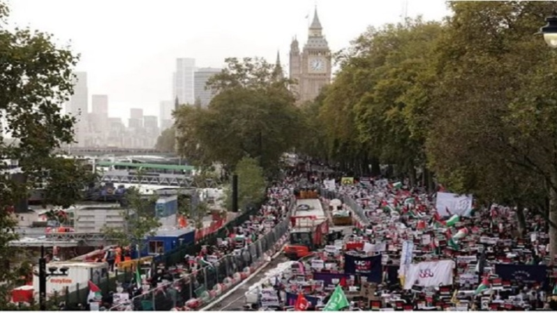 Agjencia e lajmeve Fars njoftoi se me mijëra njerëz në shenjë proteste kundër krimeve të sionistëve në Rripin e Gazës sot (e shtunë, 28 tetor) zhvilluan një demonstratë të madhe në rrugët e Londrës në mbështetje të popullit palestinez dhe kërkuan një armëpushimi urgjent në Rripin e Gazës.