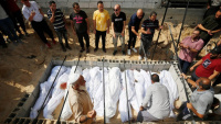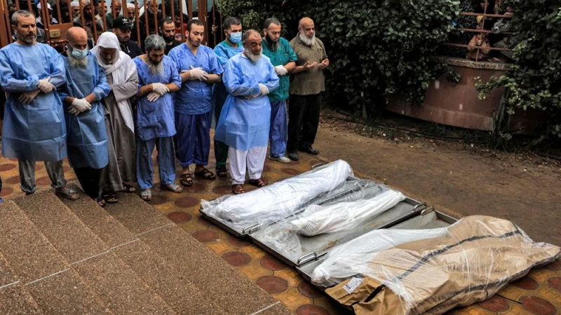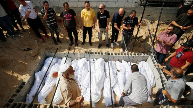 Varrosja në mënyrë masive e civilëve të vrarë në Gaza si pasojë e agresionit ushtarak barbarë të regjimit pushtues sionist.