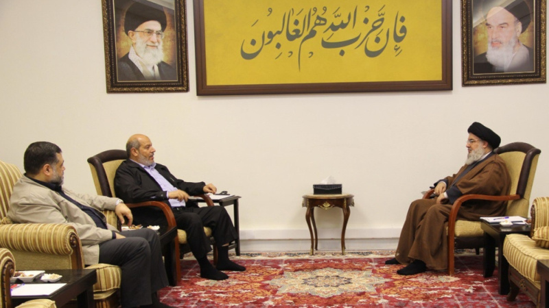 Sekretari i përgjithshëm i lëvizjes së rezistencës Hezbollah të Libanit është takuar me një delegacion zyrtarësh të lartë të lëvizjes së rezistencës palestineze Hamas.