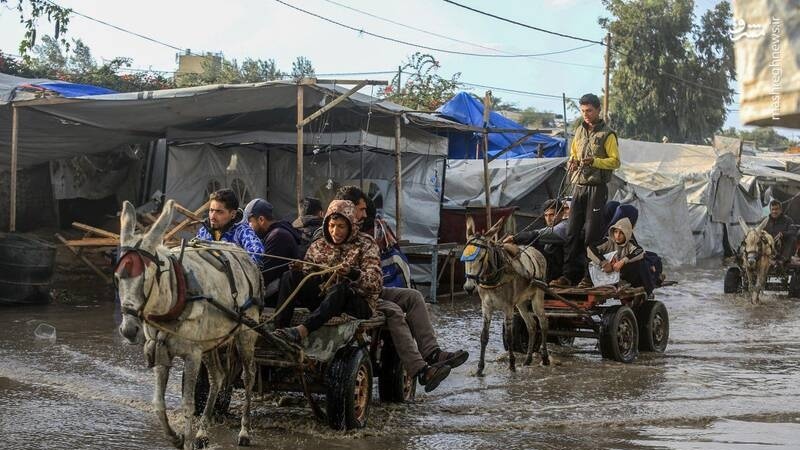 Nga ana tjetër, shirat e rrëmbyeshëm dhe të ftohtit ekstrem kanë përmbytur tendat e të zhvendosurve, duke lënë mijëra palestinezë, përfshirë fëmijë, gra dhe të sëmurë, të bllokuar në kushte të vështira dhe çnjerëzore. Ardhja e dimrit e ka bërë situatën humanitare të gati një milion e gjysmë personave të zhvendosur edhe më kritike; aq sa vazhdimi i këtyre kushteve pa mbërritjen e tendave dhe karvanëve mjeteve të banuimit do të rezultojë në një katastrofë të madhe humanitare. Kjo është në kohën kur Izraeli vazhdon të pengojë hyrjen e ushqimit, ilaçeve, tendave dhe furnizimeve të nevojshme në masën që u nevojitet palestinezëve.