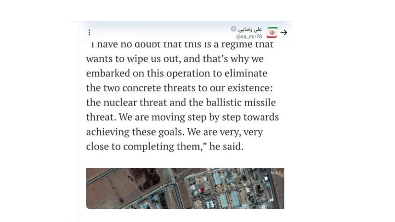 Gazeta izraelite “The Times of Israel” citoi Netanyahun të ketë thënë se qëllimi kryesor i operacionit ishte shkatërrimi i dy kërcënimeve objektive të Iranit: programit të tij bërthamor dhe raketave balistike. Ai theksoi se Izraeli do të ecë përpara hap pas hapi për të arritur këto qëllime dhe nuk do ta përfundojë luftën para se t’i arrinte këto qëllime.