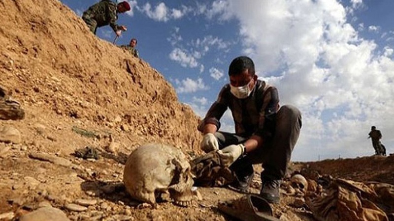 Agjencia e lajmeve Anatoly njoftoi se forcat e përbashkëta të ushtrisë dhe Hashd Sha’bi të Irakut të mërkurën gjatë operacioneve për spastrimin e rajoneve rreth qytetit Tuzkhurmatu, kanë zbulur një varrezë masive me 20 trupa të civilëve të vrarë nga grupi terrorist ISIS. Më parë Rakan Sa’id Al-Xhaburi, kryetari i provincën Kirkuk, ka njoftuar për zbulimin e një varri tjetër masiv në të cilin ishin varrosur me dhjetëra trupa ushtarake dhe civile irakiane në Kirkuk. Ai ka thënë se ky është varri i 14-të masiv që është zbuluar në këtë rajon. Forcat irakiane gjatë muajve të kaluar dhe pas thyerjes së grupit terrorist ISIS, kanë zbuluar me dhjetëra varreza masive në rajonet e çliruara të Irakut.