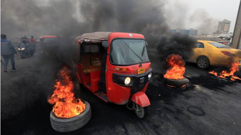 Disa grupe të dhunshme në Irak të cilët që nga dita e diele në mëngjes kanë hyrë në radhët e protesta qytetare paqësore, duke keqpërdorur situatën e krijuar në këtë vend, kanë djegur goma në disa rrugë të Bagdadit dhe kanë bllokuar komunikacionin.