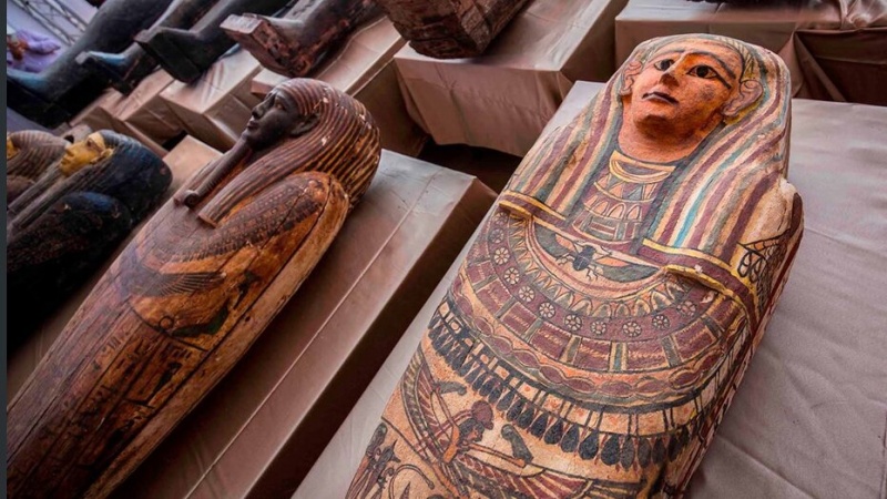 Ky zbulim i madh përfshinë 3 puse të thella në provincën Giza në jug të Kajros në të cilët janë gjetur 59 arkivole të mbyllura, me dhjetëra mumje të vjetër mbi 2500 vite, me qindra objekte antike dhe një statujë e madhe bronzi.