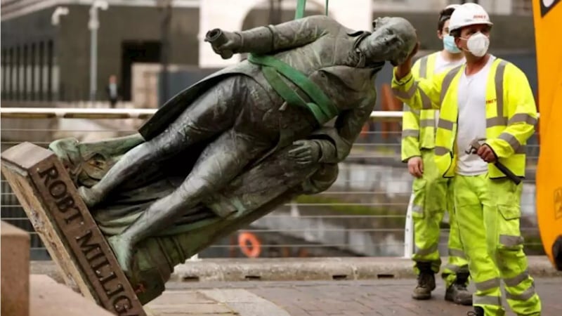 Sipas agjencisë së lajmeve IRIB; Statuja e dy skllavëruesve, e cila u ngrit 115 vjet më parë në fasadën kryesore të Universitetit Goldsmiths në jug të Londrës, po hiqet nga këmbëngulja dhe përpjekjet e kundërshtarëve të skllavërisë dhe racizmit dhe lëvizjes Jeta e zezakëve vlen. Pas ankesave dhe kundërshtimeve të përsëritura, Universiteti Goldsmith njoftoi se kishte vendosur të hiqte statujën e Francis Derek dhe Lord Nelson. Francis Drake ishte një admiral britanik i cili luajti një rol të rëndësishëm në shitjen dhe blerjen e skllevërve gjatë sundimit kolonial britanik. Lord Nelson është gjithashtu një admiral britanik i famshëm i cili në beteja të ndryshme detare, më e rëndësishmja prej të cilave ishte Beteja e Trafalgar, ishte në gjendje të prezantonte Marinën Britanike si forcë detare superiore pas mposhtjes së Francës dhe Spanjës. Ai akuzohet gjithashtu për racizëm dhe skllavëri. Lëvizja kundër racizmit dhe simbolet e skllavërisë në Britani kanë bërë thirrje për çmontimin e të paktën 78 statujave dhe simboleve të skllavërisë në Britani.