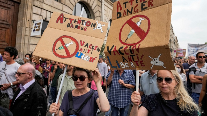 Protestat e kundërshtarëve të vaksinimit të detyrueshëm në Francë.