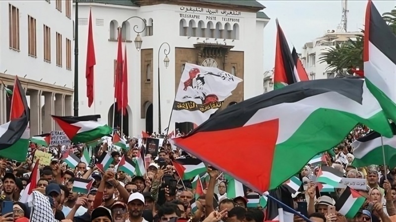 Populli maroken demonstron në mbështetje të palestinezëve dhe dënon krimet e regjimit sionist