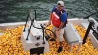 Në mënyrë për të mbledhur para për një organizatë jo-fitimprurëse, 60 mijë rosave plastike konkurruan me njëra-tjetrën në lumin Çikago.