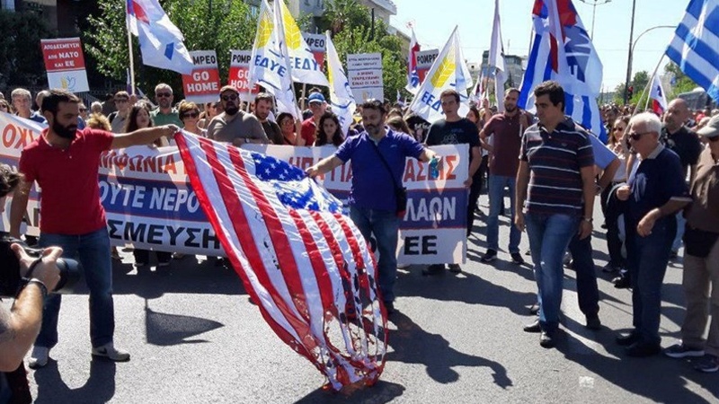 Grekët djegin flamurin e SHBA