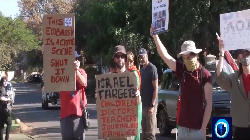 Katika jiji la Pretoria, waandamanaji wakiwa na mabango na bendera za kuunga mkono Palestina wameitaka serikali ya Afrika Kusini kufunga ubalozi wa Israel na kumfukuza balozi wake nchini humo.