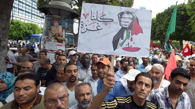 Gazeti la al Quds al Arabi linalochapishwa mjini London Uingereza limeripoti habari hiyo na kusema kuwa mamia ya wananchi wa Tunisia wamefanya maandamano mbele ya bunge la nchi hiyo wakilitaka lipasishwe sheria ya kulihesabu suala la kuwa na uhusiano wa kawaida na utawala wa Kizayuni wa Israel kuwa ni uhalifu.
