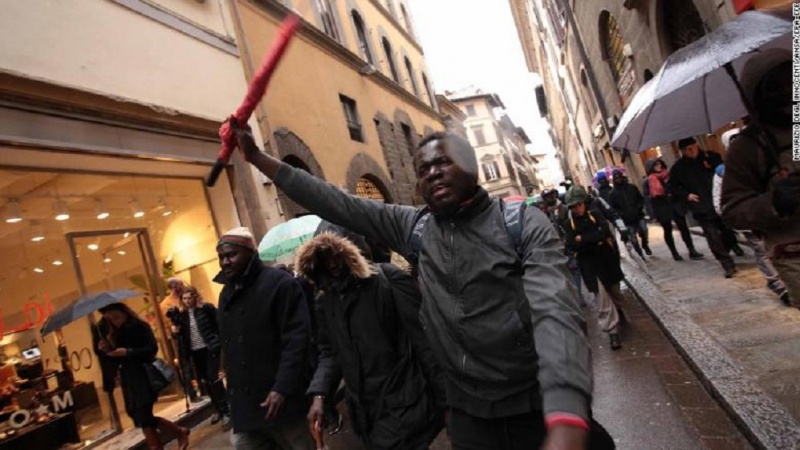 Wahajiri wa Kiafrika wamefanya maandamano katika mji wa Florence nchini Italia wakipiga nara za kulaani ubaguzi wa rangi na kupinga mauaji ya mhajiri wa Kiafrika yaliyofanywa na raia wa Italia.
