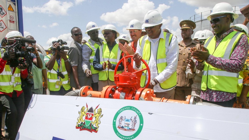 Akiwa katika katika eneo la visima vya mafuta huko Lokichar katika kaunti ya Turkana kaskazini mwa Kenya, Rais Kenyatta amezindua safari za malori manne yatakayosafirisha mapipa 600 ya mafuta hadi katika kiwanda cha kusafisha mafuta kilichoko Changamwe katika Kaunti ya Mombasa. Rais Kenyatta amesema usafirishaji huo wa majaribio ni mwanzo wa safari ndefu itakayozaa matunda. Mafuta hayo yanatazmiwa kuuzwa katika soko la kimataifa na hivyo kuifanya Kenya iwe miongoni mwa nchi zinazouza mafuta ghafi ya petroli duniani. Rais Kenyatta amesema serikali ya Kenya itajitahidi kuzalisha bidhaa zitokanazo na mafuta ghafi ya petroli ili kuimarisha ustawi na uwekezaji wa kigeni. Aidha amesema serikali inatekeleza mkakati wa uchimbaji wa gesi nchini humo.