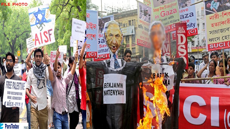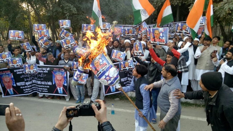 Maandamano makubwa yameshuhudiwa katika mji mkuu wa India, New Delhi, kabla ya kuanza safari ya Waziri Mkuu wa Israel, Benjamin Netanyahu katika nchi hiyo.