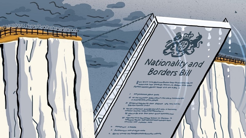 Serikali ya London inadai kuwa, sheria hiyo itaisaidia nchi hiyo kudhibiti mipaka yake na kuzuia wahajiri haramu kuingia nchini humo. Kwa mujibu wa sheria hiyo, kanuni za uhajiri zitakuwa kali zaidi, kwa watu wanaotaka kuomba hifadhi ya ukimbizi kutakiwa wafanye hivyo wakiwa nje ya nchi hiyo. Kwa wakimbizi wanaotaka kuingia Uingereza kwa kutumia mitumbwi midogo kupitia njia ya baharini ya Kanali ya Uingereza yaani English Channel, wao watakabiliwa na vikwazo na vizuizi vikali zaidi. Kulingana na sheria ya Utaifa na Mipaka, serikali ya London itakuwa na uwezo wa kuwazuia wakimbizi katikati ya bahari na kuwazuia wasiingie Uingereza.