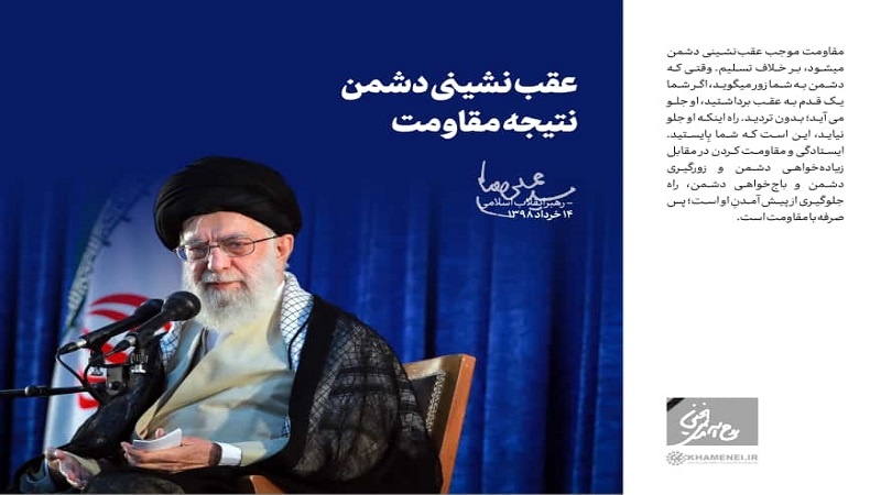 مقاومت موجب عقب نشینی دشمن می شود بر خلاف تسلیم.وقتی دشمن به شما زور می گوید اگر شما یک قدم به عقب برگشتید او جلو می آید؛ بدون تردید. راه این که او جلو نیاید این است که شما بایستید.