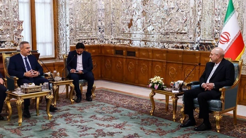 Муҳаммадбоқири Қолибоф, раиси Маҷлиси Шӯрои исломии Эрон дар дидор бо Ҳокон Фидон, вазири хориҷаи Туркия