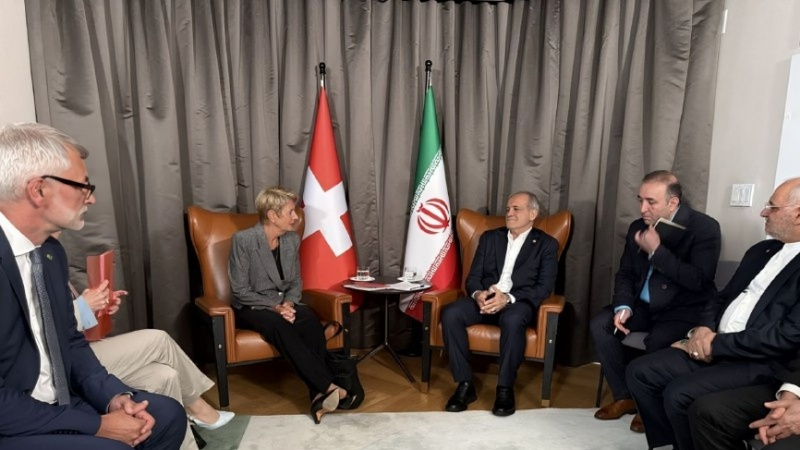 Masud Pezeşkian ýerli wagt bilen çarşenbe güni öýlän Nýu-York saparyny dowam etdirip, Şweýsariýanyň prezidenti Karin Keller-Sutter bilen duşuşdy we bu ýurduň ynsanperwerlik tagallalaryna ünsi çekmek bilen häzirki wagtda Gazadaky bigünä we goragsyz çagalar we aýallar derman we azyk ýetmezçiligi sebäpli ölýärler we Şweýsariýa betbagtçylygyň dowam etmeginiň we ýaýramagynyň öňüni almak üçin täsirli tagalla edip biler diýdi.