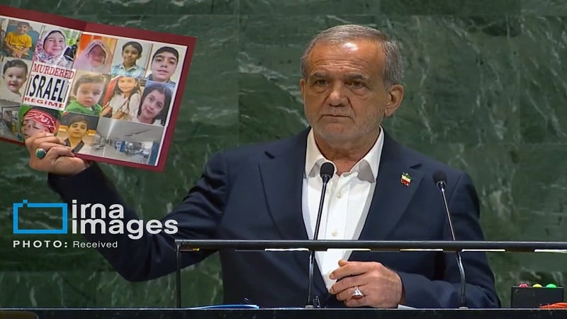 Bə pars todey xəbəron əsos,İron İslom Respublika prezdent Məsud Pezeşkiyan zinə İ bə milləton təşkilati umumiyə assambleyaədə əlovəş karde ironi millət de zumand və əzəmətinə ruh və əbədiyə irodə çandə kərə sobutış kardə ki hucum əkon vədə səcdə əjən ni və ımruj həm təcavuzkaron vədə bəştə imonı ğıvvə iyən milliyə vəhdəti peşt pur beədə səbarz mandəy.