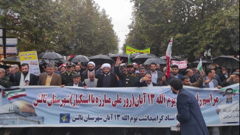Tolış şəhrıstoni viloyətmədorə millət, Abanə manqi 13 minnə ruji mitinqədə deştə hərorətinə iştiroki vositə, şoqirdon ruj, de beynəlxalğə istikbori mubarizə bardey ruj, Amerkə cəsusi lonə soyb bey sorəqardış iyən iğtişoşon məhkum kardey, co kərə əzəmətinə ğəhrəmonəti xalğ kardışone.