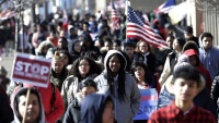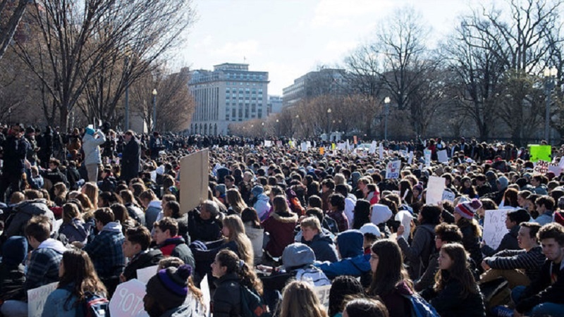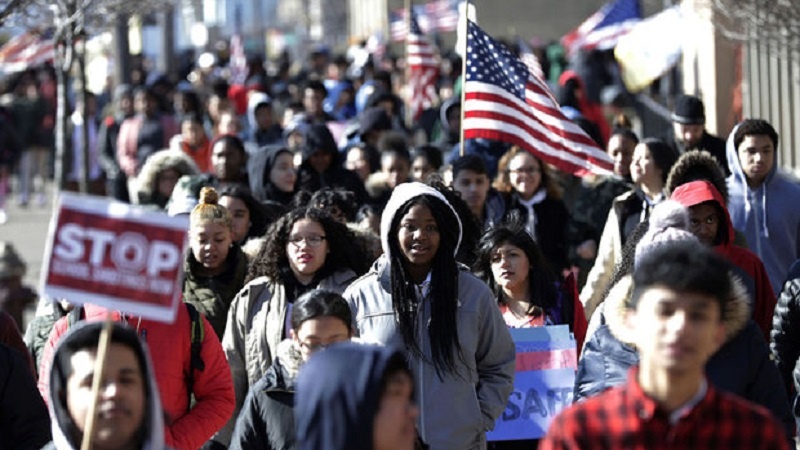 Bə silohinə həmlə iyən hoziyətion zidd Amerkəvıjə tələbəon etiroz aksiya