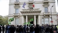 İslomi həxədə dınyo mısılmınon bə Makroni zidd etırozinə aksiyəon