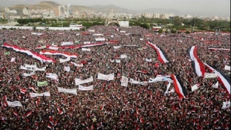 .Yəmənıjon çı Səudiyyə təcavuzkorə koalisiyə bəçəvon kişvəri təcavuzi həştminə sori astanədə Milli Sabitəti ruji qıləy dıjdə etırozinə aksiyəon bərpo kardəşone.