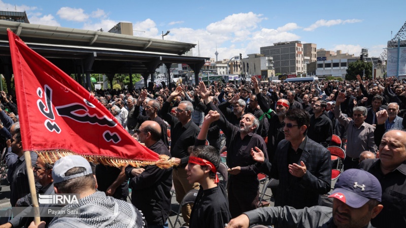 De İmom Cəfər Sadığ(ə)-i şəhodəti həmzəman Tehroni Sadığiyə meydonədə Sadığiyon nomo mitinq bərpo bıə
