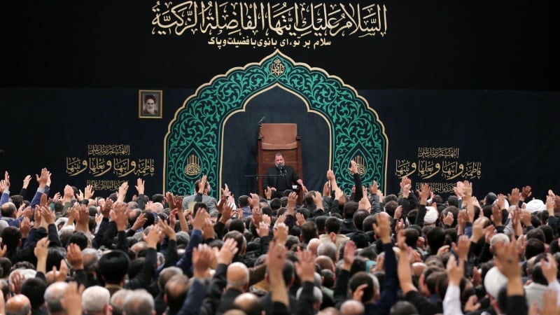 Həzrət Fatimə(s) şəhodəti əyyomi iminə şəvi mərosim de Həzrət Ayətullah Xameneyi huzuri İmom Xomeyni(r) Huseyniyədə bərpo bıə.