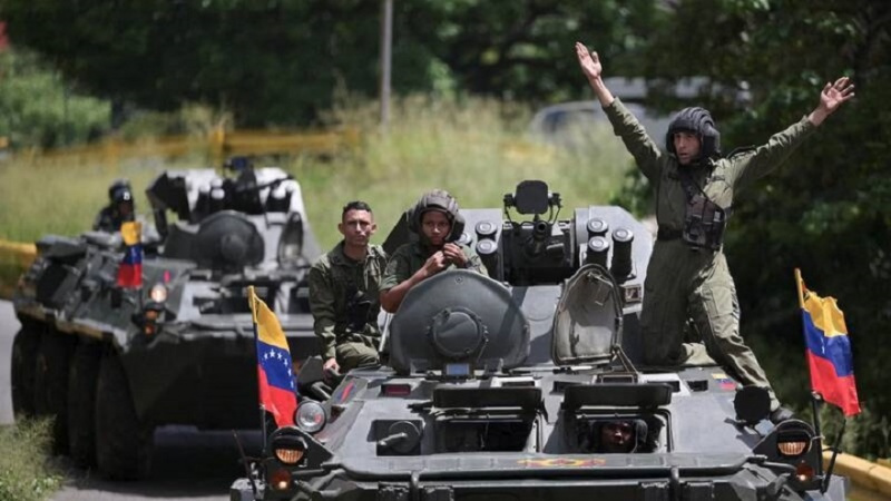 Venezuela Devlet Başkanı Nicolás Maduro ise Washington yönetimini hükümetini devirmeye çalışmakla suçladı ve halkı ile ordusunun her türlü dış müdahaleye karşı koyacağını vurguladı. Maduro, ordu mensuplarını devlet kurumları ve kamu şirketlerinde görevlendirerek askeri sadakati sağlamlaştırmaya çalışıyor. Ancak, Venezuela ordusundaki askerlerin yaşam koşulları oldukça zor; zira aylık maaşları yaklaşık 100 dolar civarında iken, temel gıda sepetinin maliyeti 500 doları buluyor./