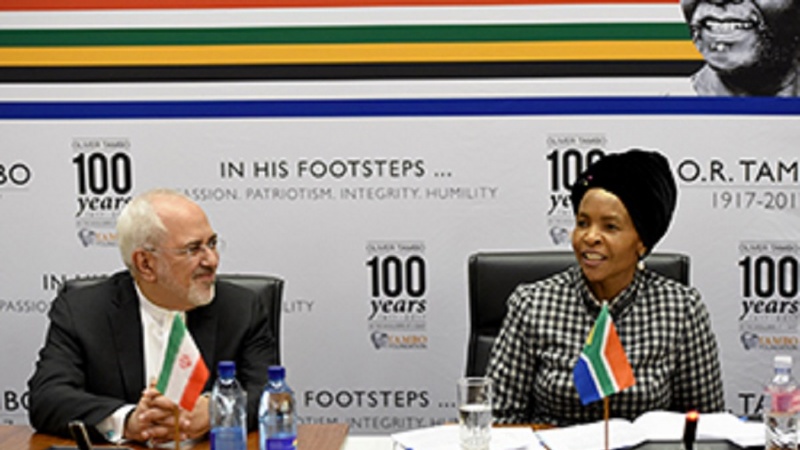 İran Dışişleri Bakanı Muhammed Cevad Zarif de ortak basın toplantısında iki ülkenin siyasi ve ekonomik münasebetlerinin geliştirilmesini sıcak karşılayarak, Güney Afrika ile Tahran'ın münasebetlerinin gelişmesi önünde bir engel olmadığını kaydetti.